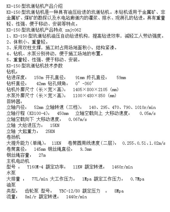 KD-150型坑道钻机 具有重量轻 分解性强 安全便捷开采矿石
