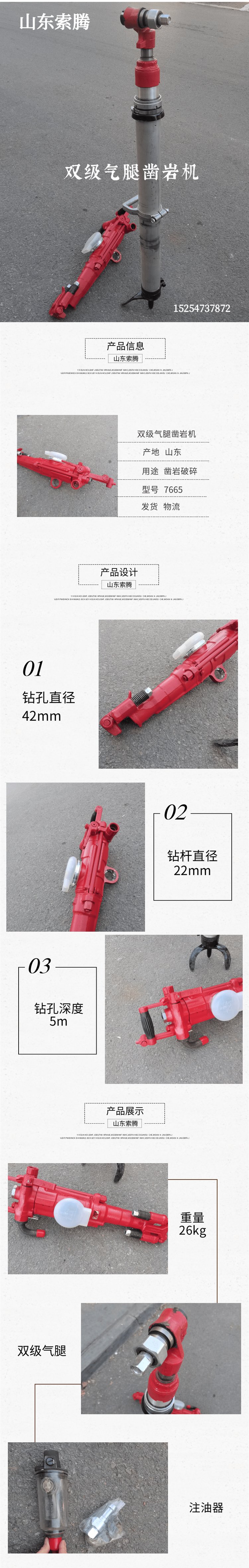 索腾7665手持式凿岩机 双级气腿式破机 7655型气动风钻钻孔机
