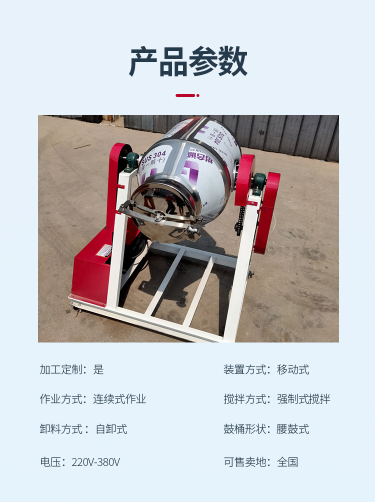 新悦不锈钢白糖食盐搅拌机 腰鼓式拌料机 家用30公斤干粉混合机