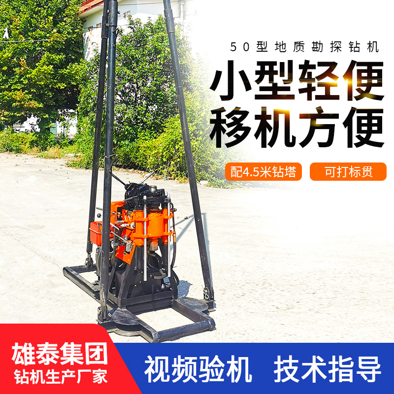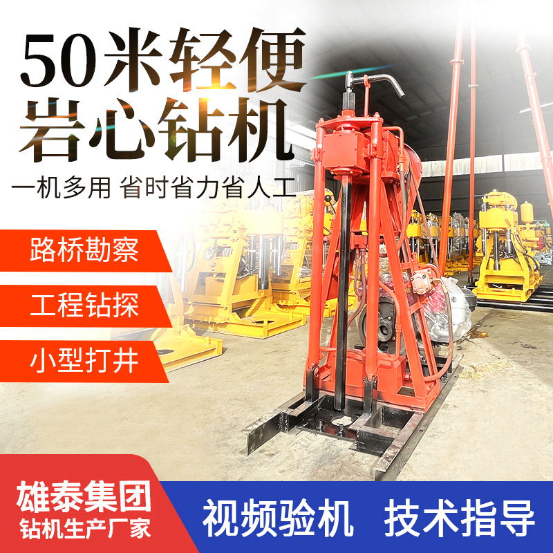 雄泰50米轻便探矿取芯钻机 12马力柴油小型液压勘探打水井钻机