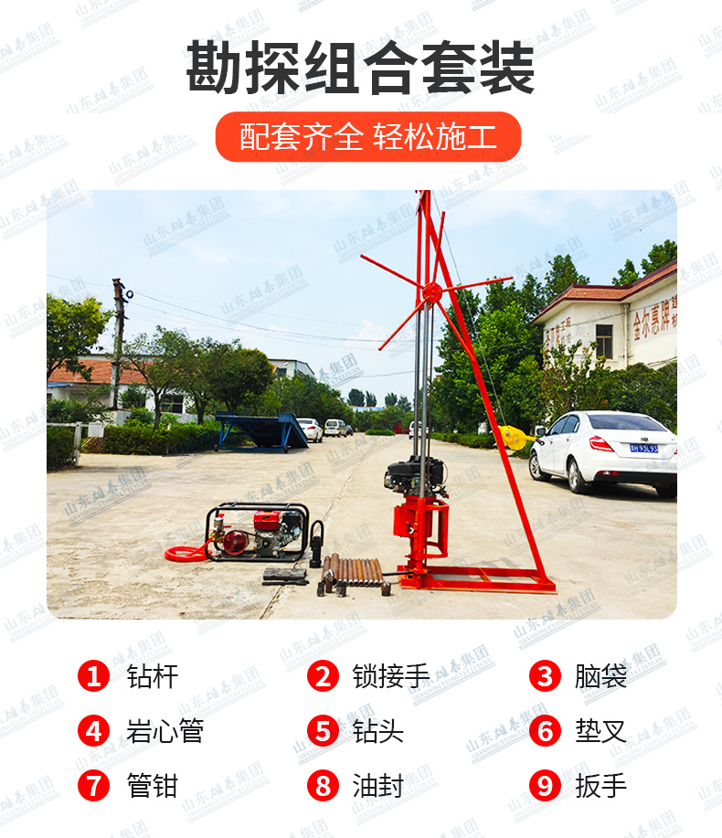 取土钻机、潜孔钻机、探矿钻机、绳索取芯钻机、土壤采样设备、地质钻机、勘探钻机、钻探机、岩心钻机、岩芯钻机、土壤取样钻机、全液压钻机、便携式钻机、取样钻机、轻便钻机、液压钻机、工程钻机