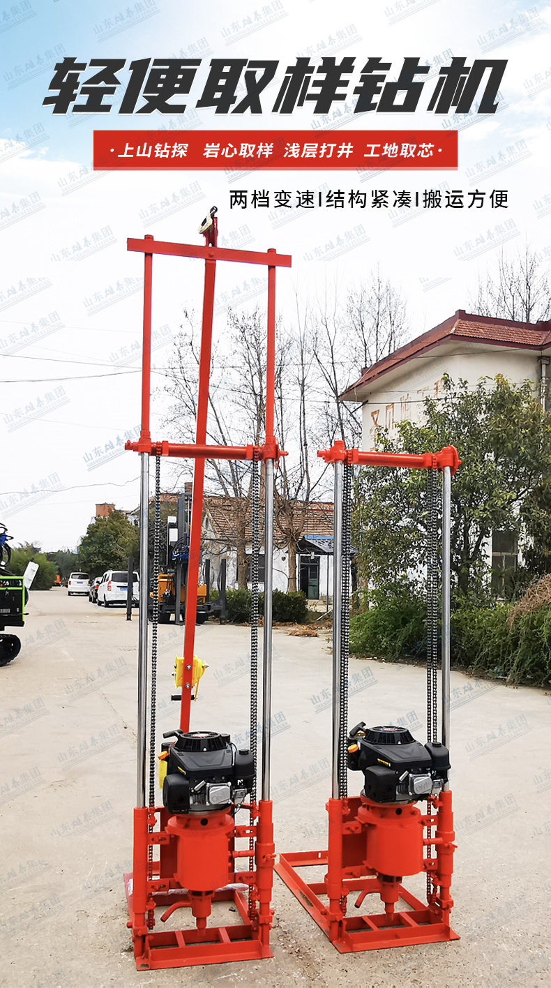 野外山地浅孔地质勘探取样钻探机 30米工程勘察取芯立架式汽油钻机