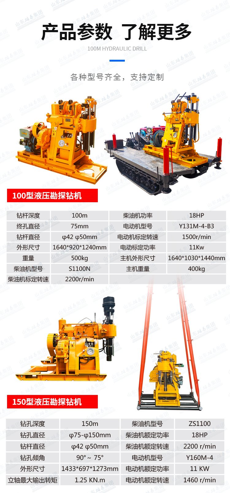 雄泰 探矿钻机 矿山勘探设备 混凝土勘察 柴油液压钻井机