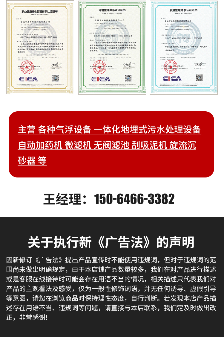 溶气气浮机、污水处理设备、一体化地埋污水处理设备、微滤机、中心传动刮吸泥机、旋流沉砂器