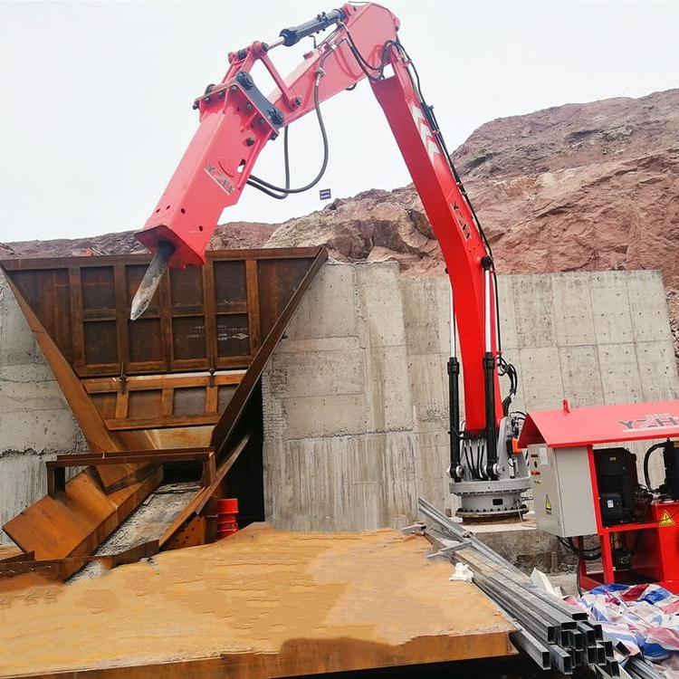 固定式破机械臂主要应用于在矿山、采石场、者砂石骨料生产线或者冶金铸造厂破大尺寸的岩石块,固定式破机械臂具有卓越的生产率、耐用性和安全性,而且节能环保!固定式液压破机的设计万完全符合客户要求的所有规范。