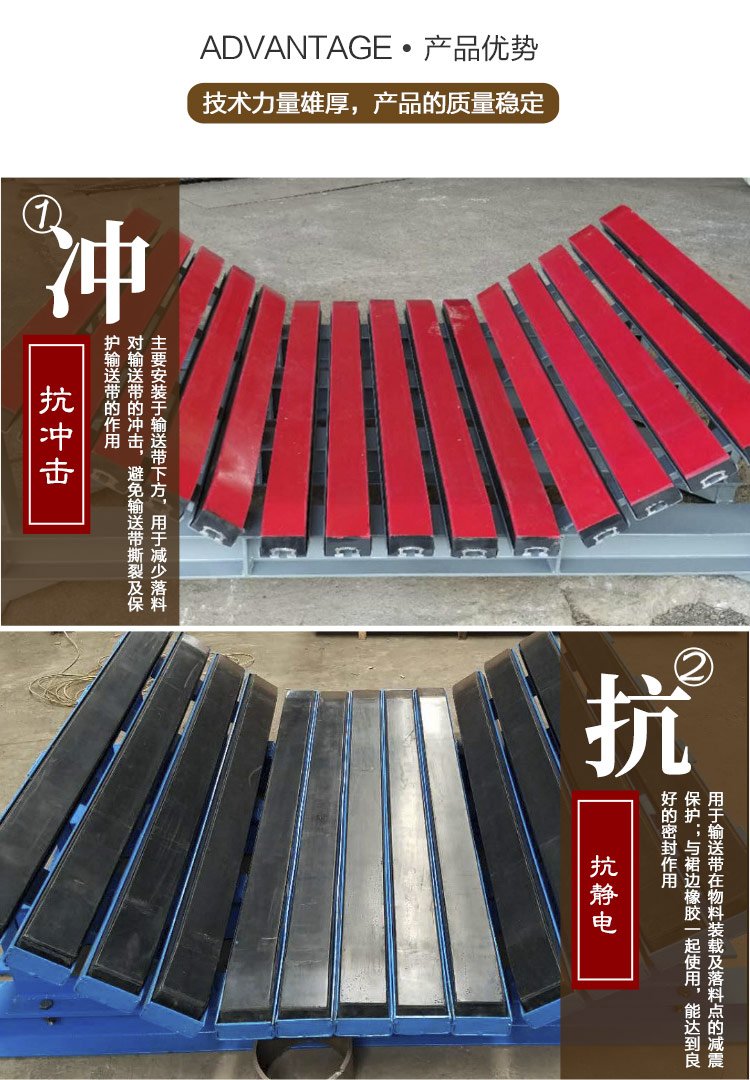 矿用山石输送缓冲床 皮带机阻燃缓冲减震结构 抗磨性高