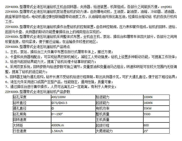 ZDY4000L型履带式全液压坑道钻机 操作简单 易于搬迁