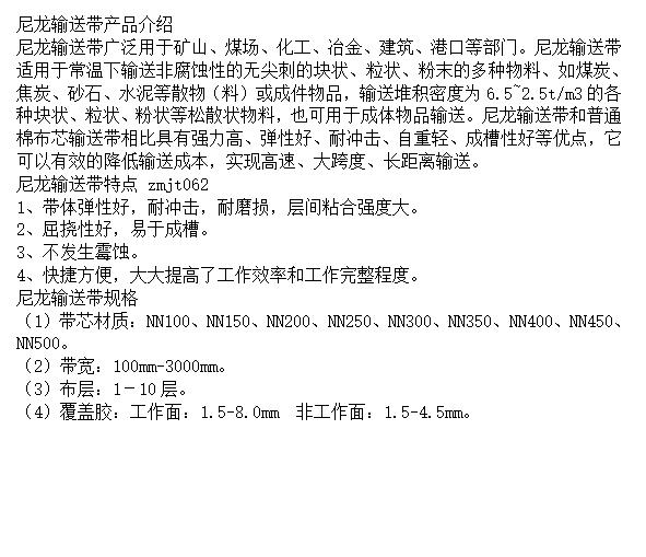 尼龙输送带强力高 弹性好 耐冲击 自重轻 成槽性好