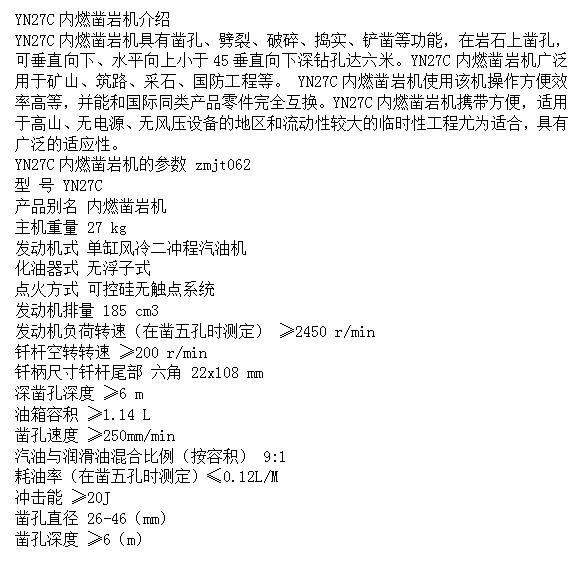 YN27C内燃凿岩机直接开采石料的工具 适用于高山无电源无地区