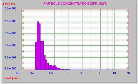 免疫球蛋白(IgG),约150 kDa, 1% PBS。使用FX和LE传感器以及SIS采样器的Accusizer FX- nano来测量未稀释的样品。结果如图1所示。总颗粒计数= 109,343,浓度= 9.7 x 108颗/mL。