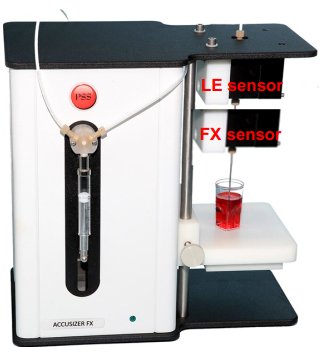 PSS Accusizer FX-Nano系统(如下所示)是设计在更小的颗粒尺寸和更高的浓度下工作。这是通过使用两个传感器完成的;FX-Nano传感器测量范围为0.15-0.6μm, LE400传感器测量范围为0.5-400μm。新的FX-Nano传感器使用聚焦光束来减少检测的总体积,从而提高了传感器的浓度限制。该传感器与SIS进样器联用,使进样体积低至250μL。此配置通过了USP787治疗性蛋白注射剂中的不溶性微粒。
