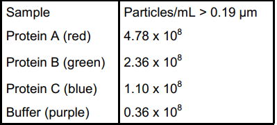 表1:缓冲液和三个蛋白样品的颗粒浓度
