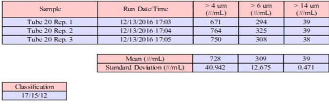 例如:12,000个颗粒/ mL> 4 µm