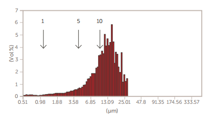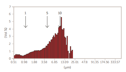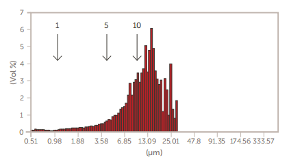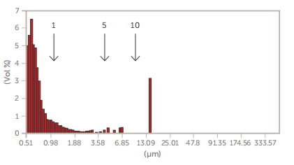 一些新的较大的GMV脂质体对于Nicomp 380 N3000激光粒度仪来说太大了(>5µm),可以用AccuSizer单粒子光学技术(SPOS)系统测量,如图3所示。