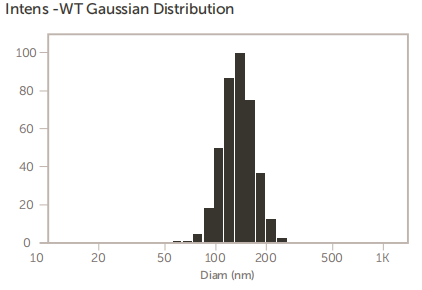 在加州大学戴维斯分校上制备和研究的阳离子脂质体含有阳离子脂质DOTAP,用于微RNA的包封。 脂质体的大小是至关重要的,因为最终这些脂质体被静脉注射到小鼠体内。 因此,最终尺寸不应大于100nm左右。 这些阳离子包覆脂质体的尺寸结果如图11所示。