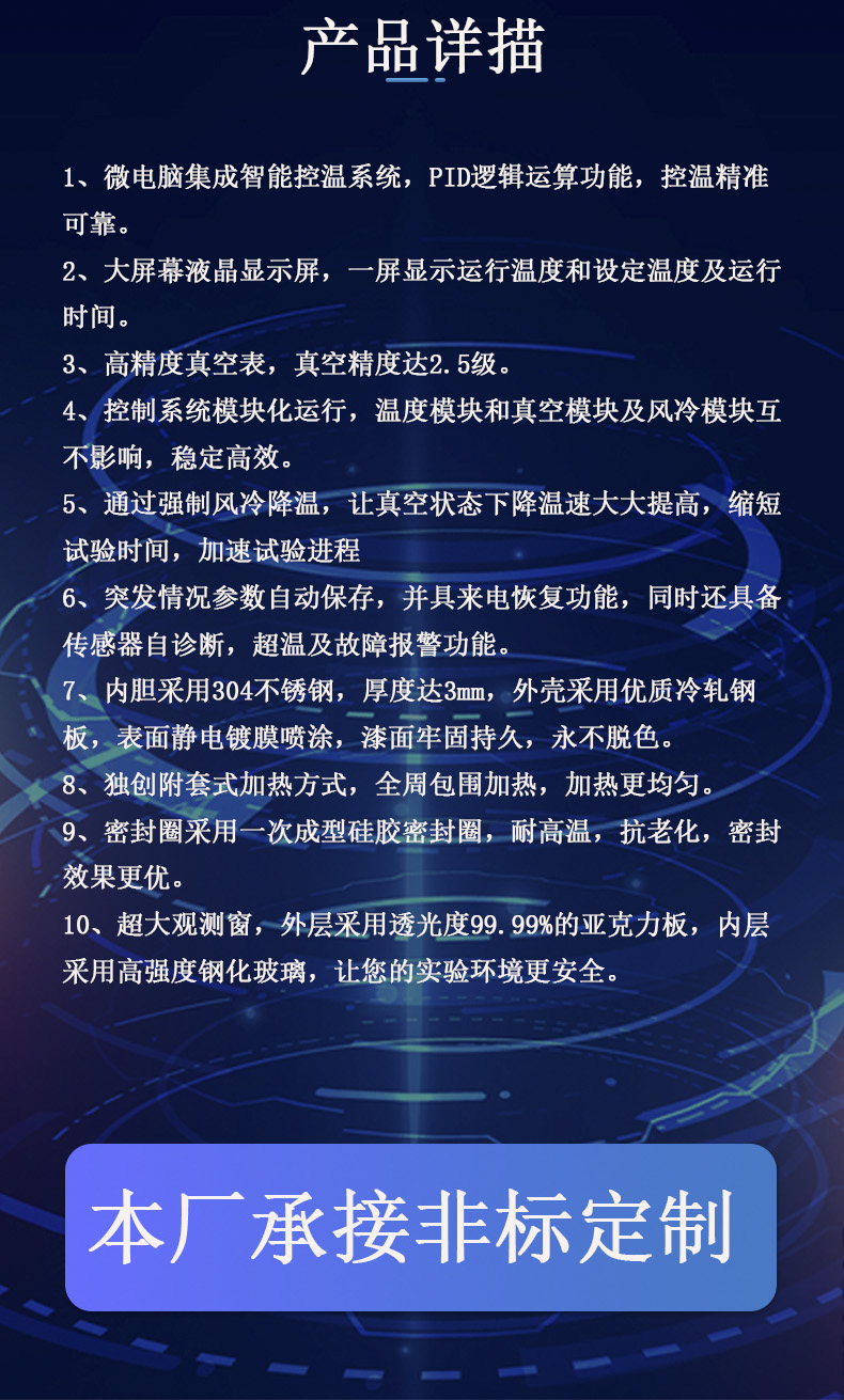 马弗炉、电阻炉、烧结炉、干燥箱、高温干燥箱、真空箱、高温真空箱、防爆真空箱、充氮真空箱、管式炉、气氛炉、二氧化碳培养箱、恒温恒湿箱、防爆干燥箱、防爆真空烤箱、洁净烘箱、超净工作台、真空保存箱、生化培养箱、霉菌培养箱、药品稳定性试验箱、高低温试验箱、高低温湿热试验箱