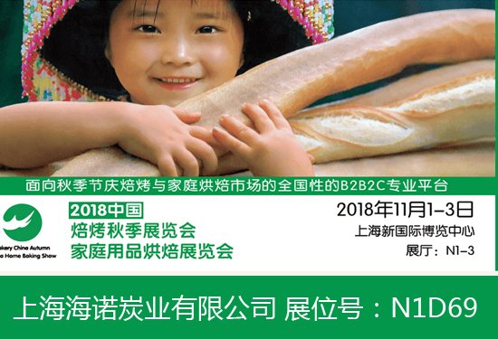 由中国焙烤食品糖制品工业协会主办的2018秋季焙烤展将于11月1--3日在上海新国际博览中心举行。上海海诺炭业有限公司作为天然食品添加剂生产制造供应商展应邀参展,展位号:N1D69,期待11月会展见!