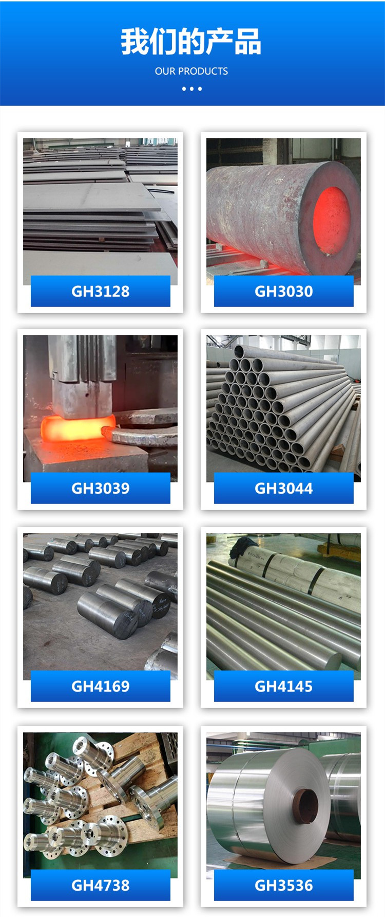 高温合金、镍基合金、钛合金、哈氏合金、模具钢、沉淀硬化钢、不锈钢、双相不锈钢、特殊合金、钽合金、铌合金、锆合金、板材、棒材、管材、锻件、无缝管、按图加工