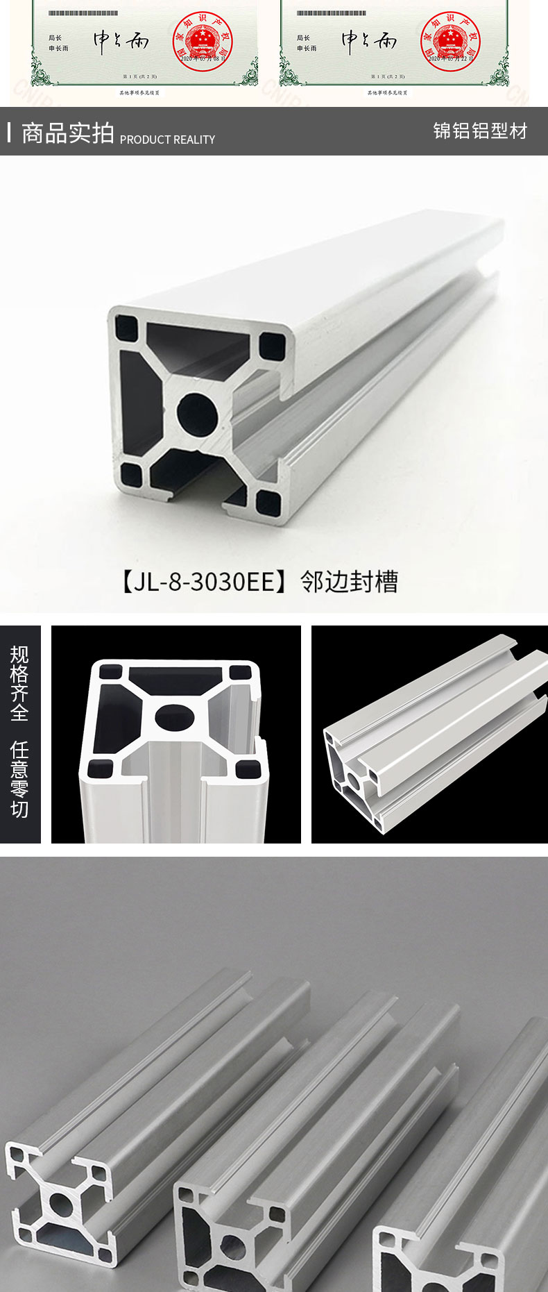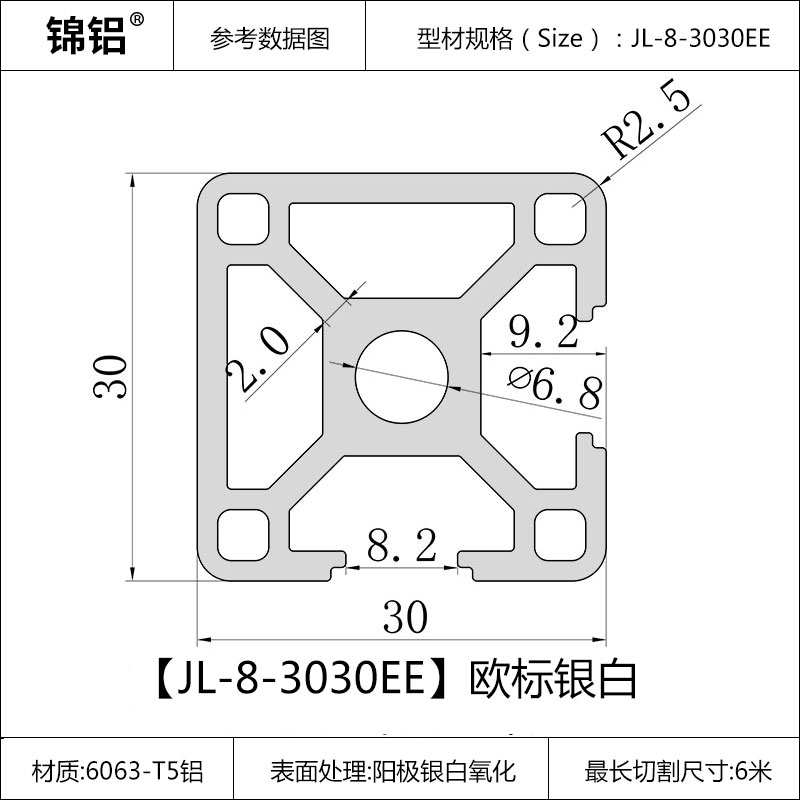 锦铝3030工业铝材欧标两面封槽设备框架机架直角立柱铝合金型材
