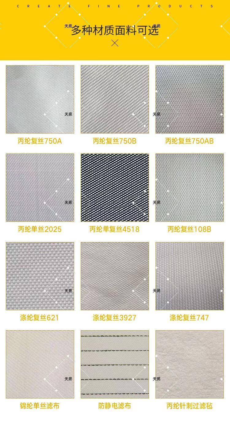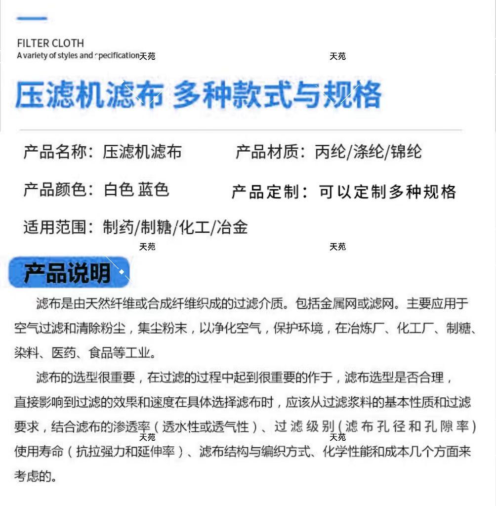 天苑 压滤机滤布板框板式厢式盘式污水淤泥洗煤隔膜过滤机滤布袋