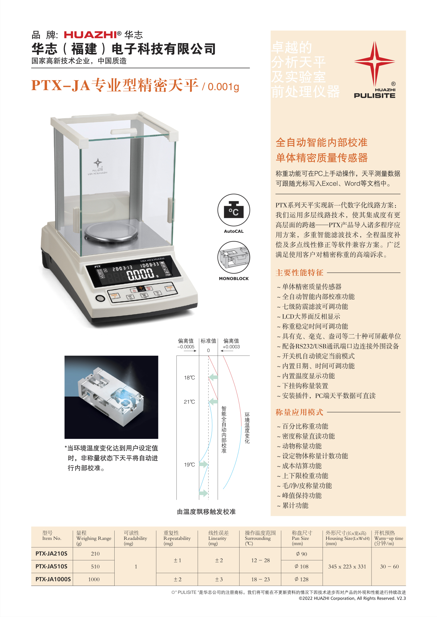 华志PTX-JA210S精密天平 210g/1mg全自动内校电子天平 小数点后3位