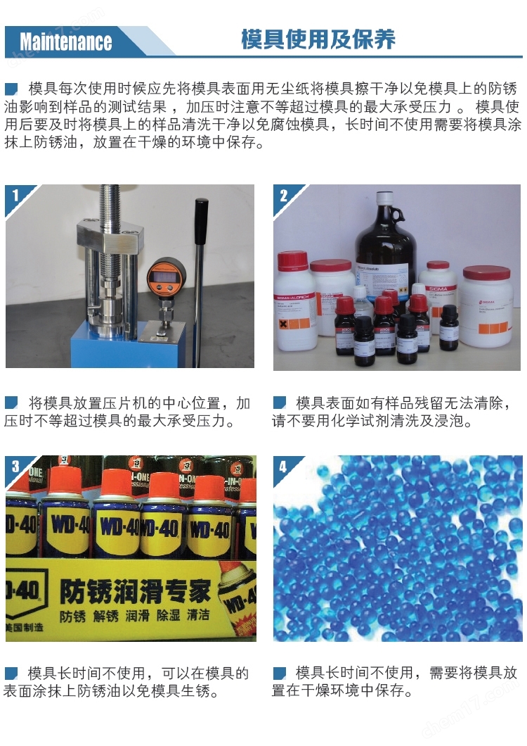 选型指南:圆柱形易退模开瓣模具属于实验室耗材,一般由模具底座、模具内芯(三个瓣)、模具套筒、模具压杆、模具垫片和模具退膜套等六部分组成,接受非标定制各种规格,货期一般为3-20天。常用模具尺寸在Φ3-Φ40mm之间,规格有:Φ3、Φ5、Φ6、Φ7、Φ8、Φ10、Φ12、Φ12.7、Φ13、Φ15、Φ18、Φ20、Φ25、Φ30、Φ32、Φ35、Φ40、Φ100mm等。