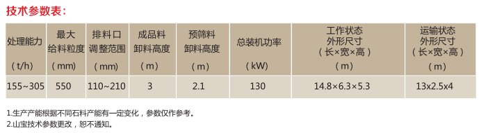 2.主机使用山宝V型腔颚式破碎机,此破碎机具有处理能力大、效率高、重量轻和安装方便等优点。