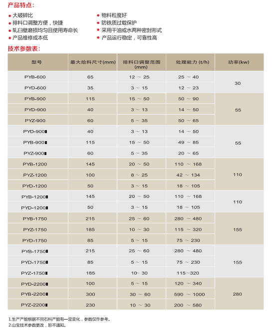 ◎大破碎比 ◎物料粒度好