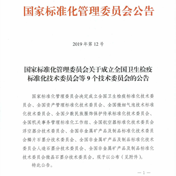 11月11日,国家标准管理委员会发布2019年第12号公告,决定成立全国微细气泡技术标准化技术委员会。