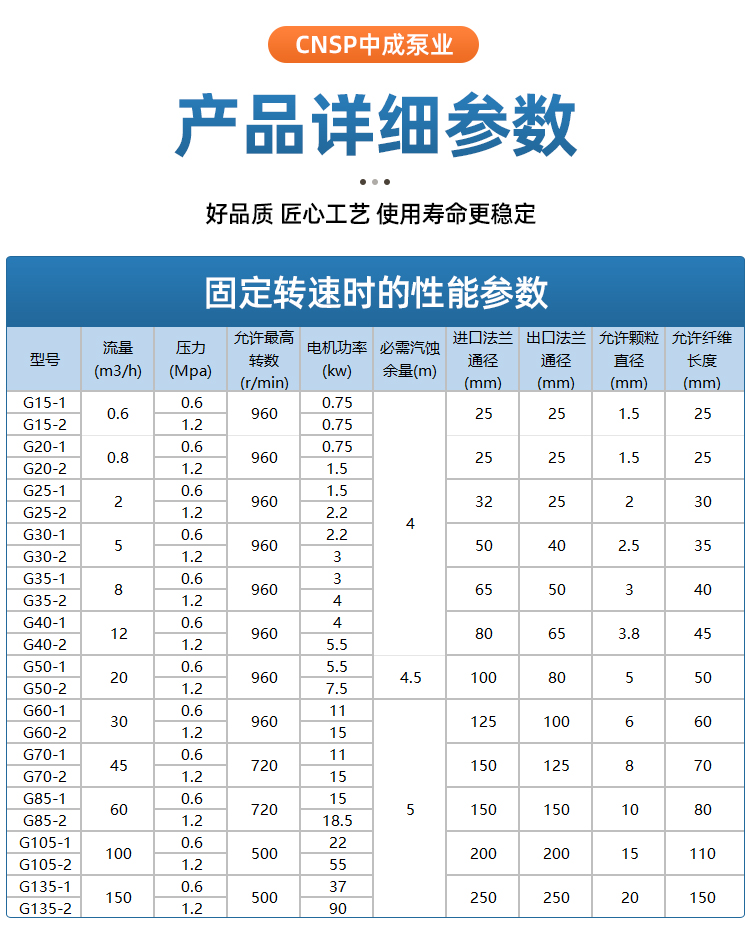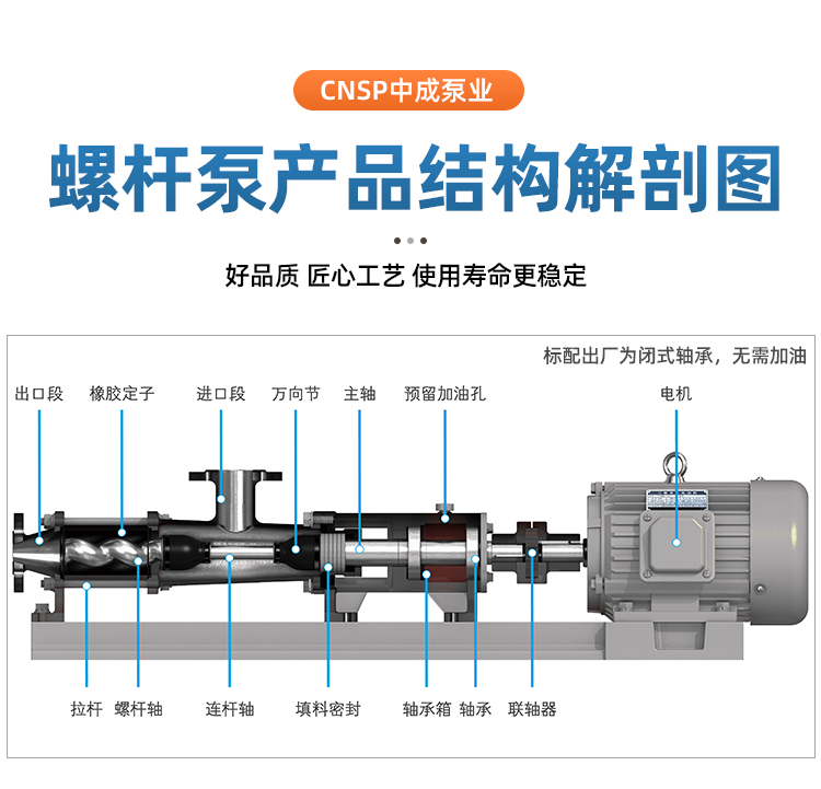 中成泵业 G型单螺杆泵 噪音低运行平稳 一手好货 介质入料泵容积泵