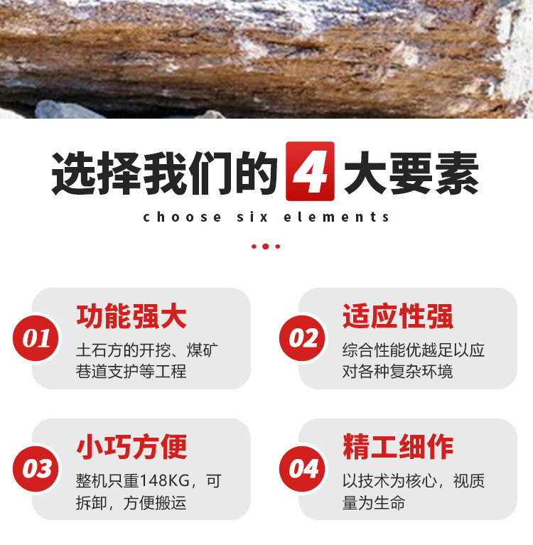 详细信息 ![]() ![]() ![]() ![]() ![]() ![]() ![]() ![]() SKB70/100/120型潜孔钻机是我厂自行设计的一种新型、、半机械化的先进凿岩设备。具有结构简单、实用轻便等特点。主要用于井下采矿场接杆钻凿上向扇形或环形中的深炮孔,亦可用于井下空场的放顶和巷道锚杆支护以及需要钻凿类似上述炮孔的石方工程。潜孔钻机技术参数:型号单位潜孔钻机70潜孔钻机80潜孔钻机100潜孔钻机130钻 |