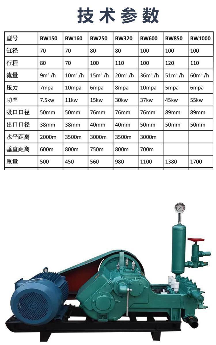 每小时1000升流量三缸泥浆泵 1000升排量高扬程钻机配套往复泵