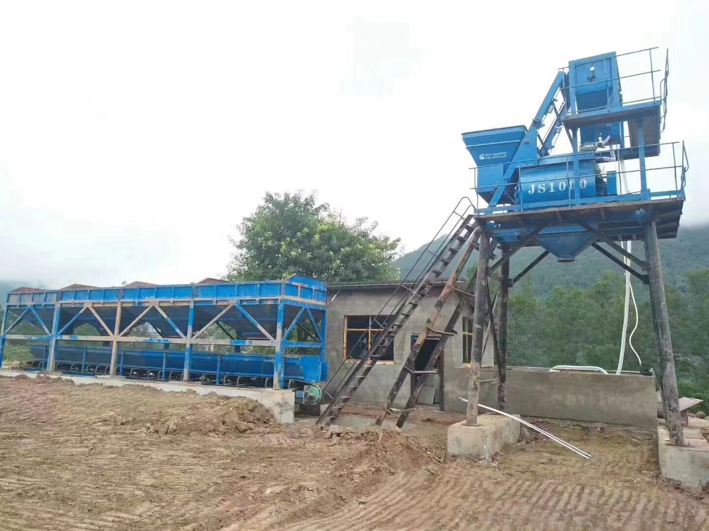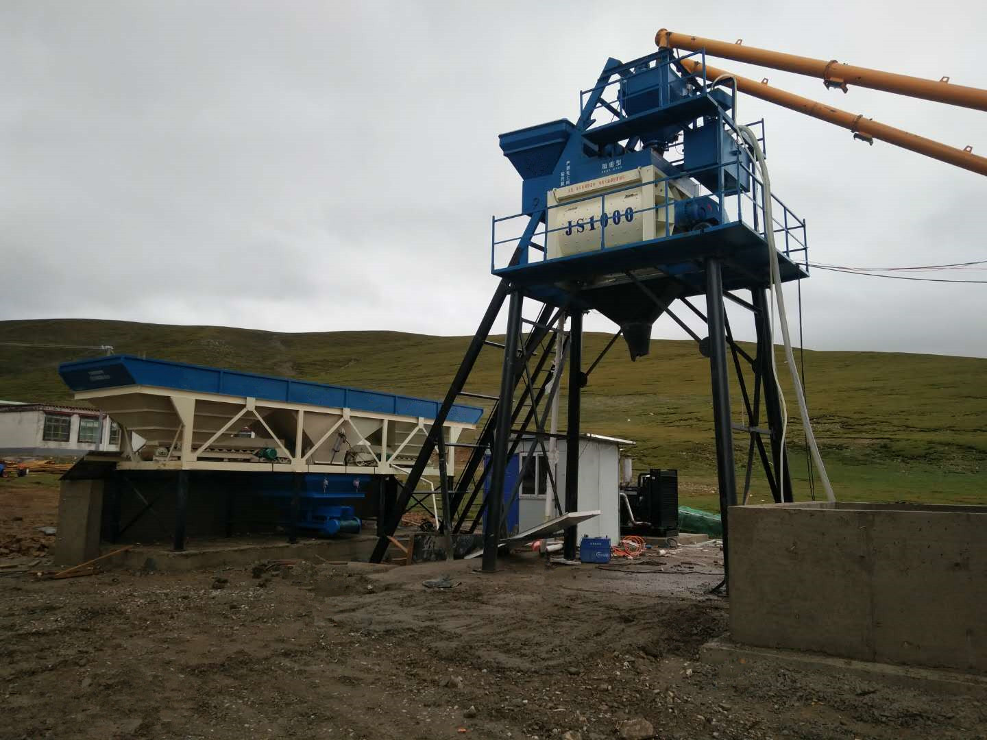 ⑷水供给系统:水箱或水池,根据水的资源条件用户自备水路系统由水泵及支架、水管及管件等组成。将水输送至水秤。水秤由计量斗及拉杆、蝶阀、传感器组成。将水投入搅拌机。