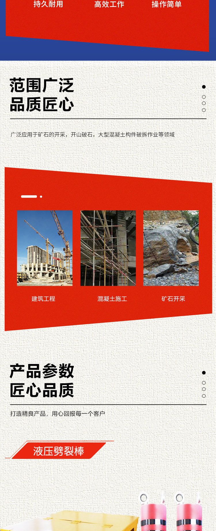 劈裂棒、分裂机、静态爆破、钻裂一体机、钻劈一体机、矿山开采、隧道掘进、破石头机器、开石头机器、岩石劈裂机、岩石胀裂机、愚公斧、开山机、裂岩机、隧道掘进、巷道掘进、巷道扩宽、煤矿井下破石、静态爆破、铣挖机、铣刨机、挖机岩石锯、挖机破斗、挖机带切石锯、挖机带光伏钻机