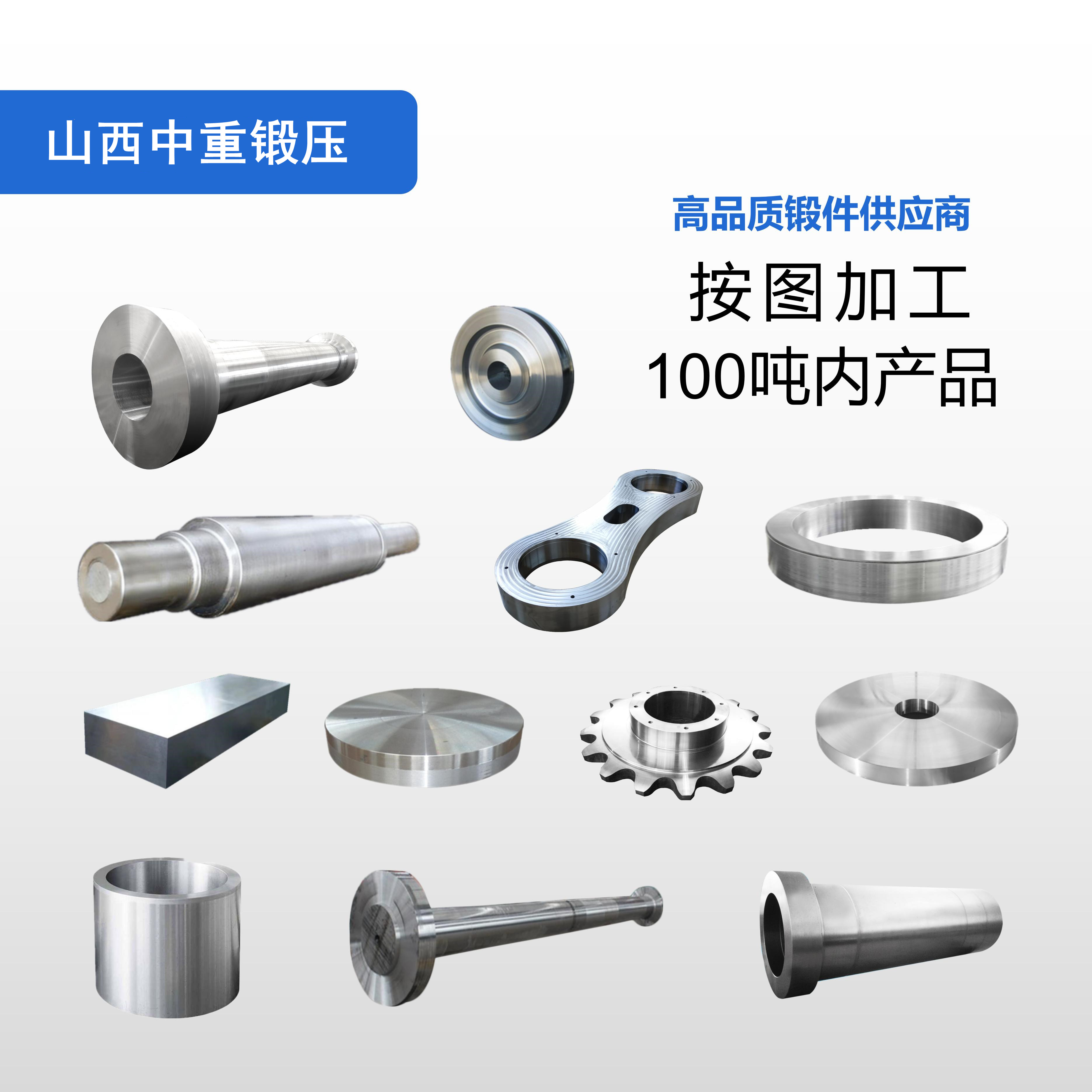 锻件、车轮锻件、不锈钢锻件、轴类锻件、筒类锻件、大型锻件、空心锻件、阀体锻件、船用锻件、液压油缸、法兰、管板、盲板、辊轴、轧辊、齿轮、滑轮、锻造加工、机械加工、链轮、液压油缸、环形锻件、自由锻