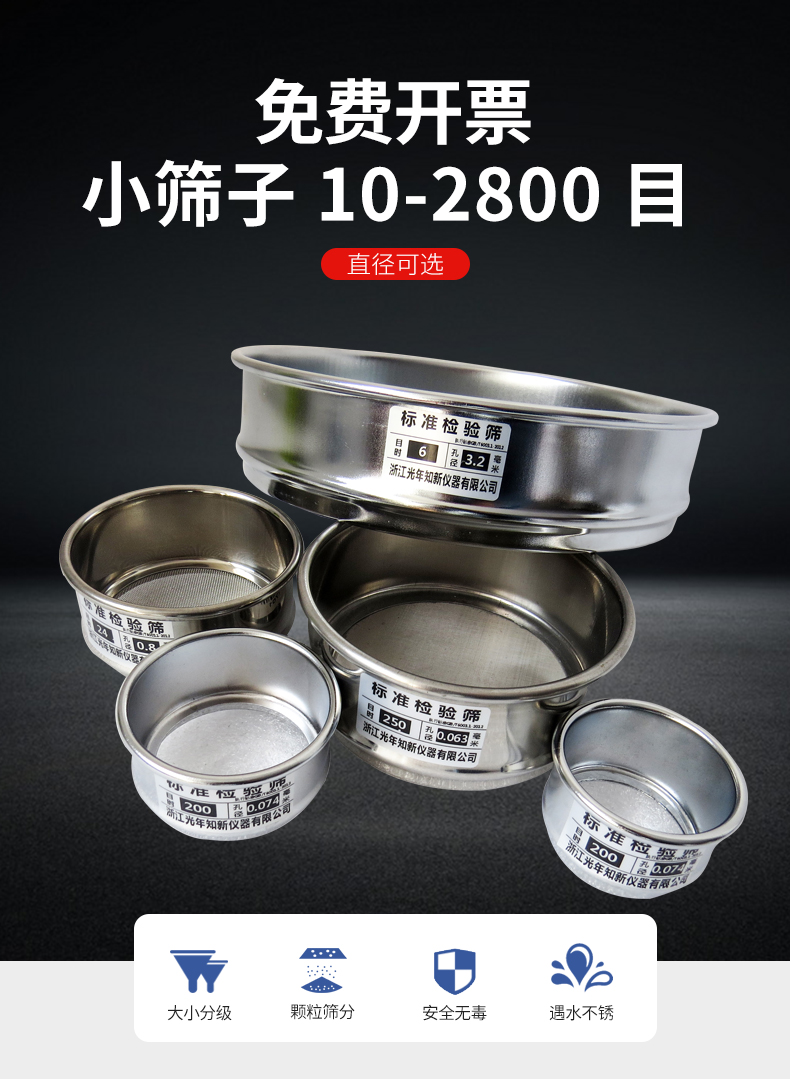 直径8cm标准检验筛双层全整体304不锈钢筛网过滤验小筛子8-2800目