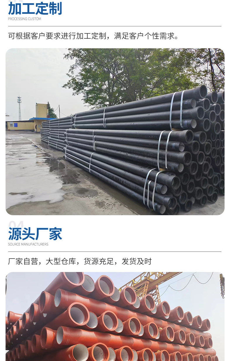 k9级给水球墨铸铁管dn300 经久耐用 内壁光滑 厂家直供 支持定制