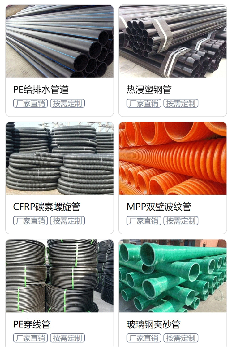 市政管道、给排水管道、钢丝网骨架管、克拉管、尼龙管、梅花管