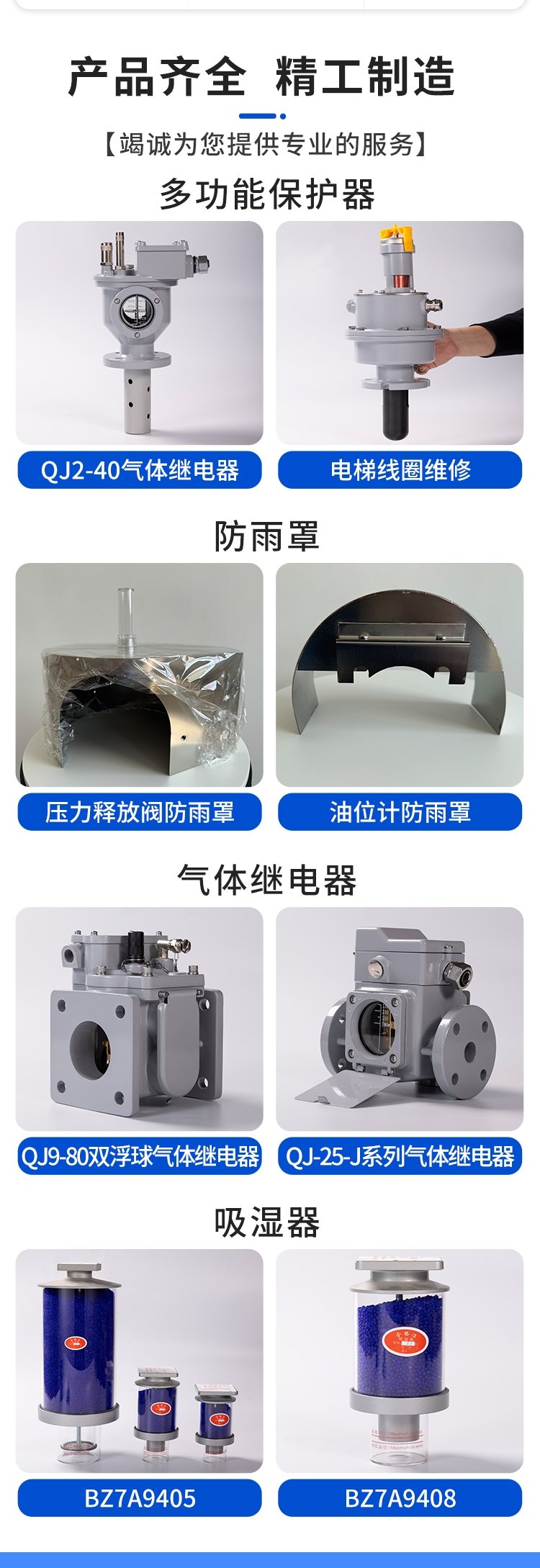 压力释放阀、气体继电器、双浮球气体继电器、指针式油位计、吸湿器