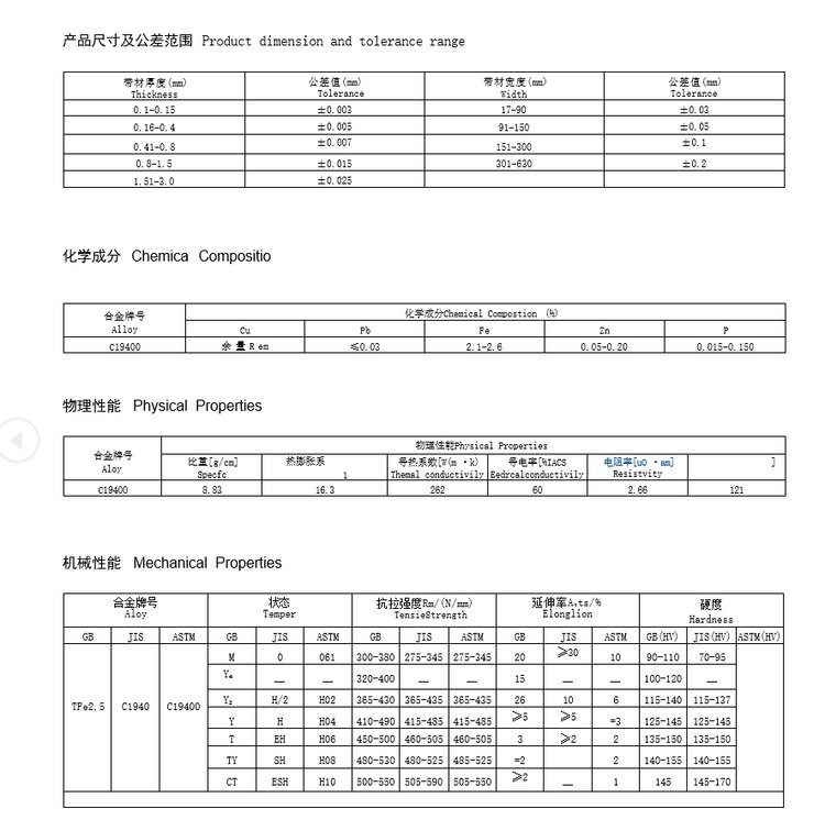c194铜带 芯片引线框架用电子铜材 五金冲压厂家直营