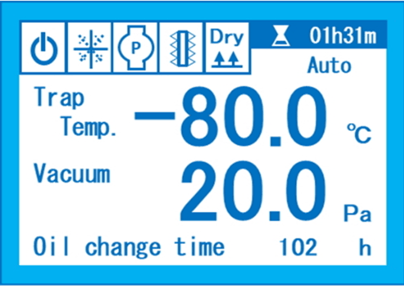 除了陷阱温度和真空度外,还搭载了可以一目了然的了解装置状态的液晶屏幕。