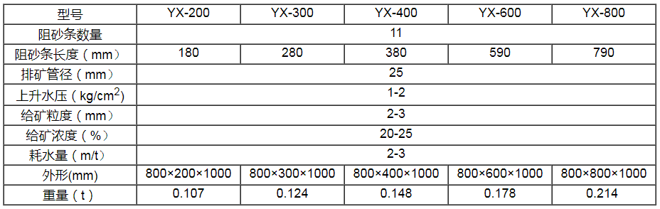 水力分级箱又名云锡式分级箱一铁制的角锥箱,上部安有楔形阻砂条,下面装有分级箱底阀。通常由从200毫米到800毫米一系列宽度的分级箱用普通水槽联结而成,沉砂则由粗到细排出。