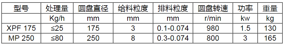 本机器主要是由机体、底座、主轴、动磨盘、固定磨盘、端盖上盖及料斗等构成。经三角带将动力传给皮带轮带动主轴旋转,使动磨盘固定磨盘相对运动,从而使试样粉碎。出料粒度可通过大小手轮,主轴等调整磨盘间隙达到控制粒度的目的。