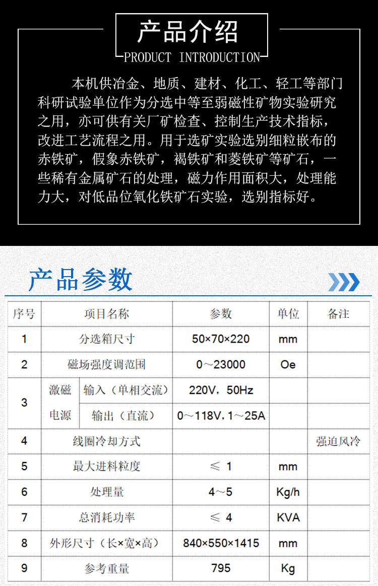 CSQ-50*70强磁选机 实验室湿法磁选机 23000GS独居石钽铌矿磁选设备