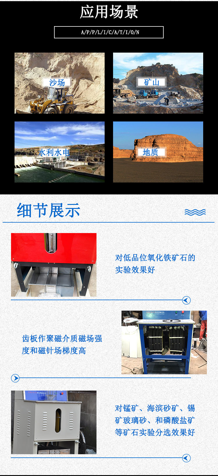 摇床、螺旋溜槽、选矿离心机、铜米机、筒型球磨机、螺旋洗沙机、螺旋一体机、干筛机、单槽浮选机、盘式真空过滤机、三头研磨机、圆盘粉碎机、顶击式振筛机、磁选机、实验室颚式破碎机、锥形球磨机、三棍四筒棒磨机、磁选管、密封式制样机、鄂式破碎机、制砂机、锤式打砂机、对辊破碎机