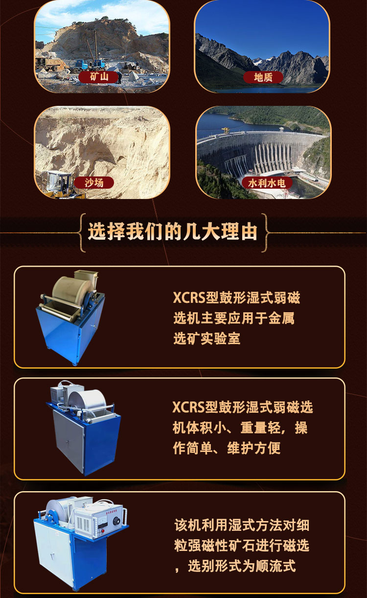 摇床、螺旋溜槽、选矿离心机、铜米机、筒型球磨机、螺旋洗沙机、螺旋一体机、干筛机、单槽浮选机、盘式真空过滤机、三头研磨机、圆盘粉碎机、顶击式振筛机、磁选机、实验室颚式破碎机、锥形球磨机、三棍四筒棒磨机、磁选管、密封式制样机、鄂式破碎机、制砂机、锤式打砂机、对辊破碎机
