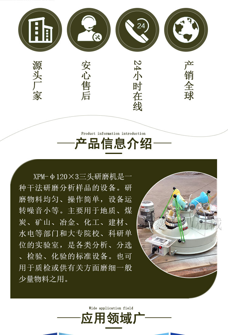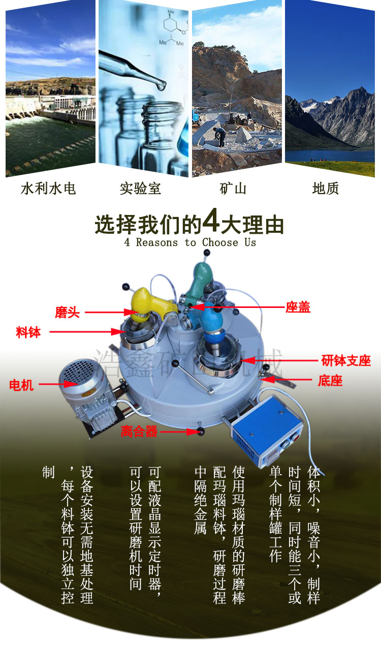三头玛瑙研磨机 实验室振动磨矿机 XPM120*3 干法矿磨机 样品细磨机