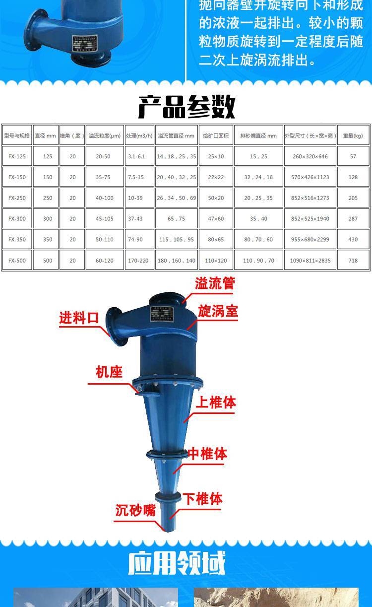 供应加厚聚氨酯旋流器 FX系列水力选矿旋流器组 细沙重介质回收设备