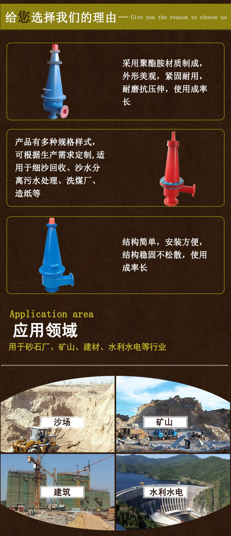 尾矿细颗粒回收设备 FX-350型聚氨酯沉沙嘴水力旋流器