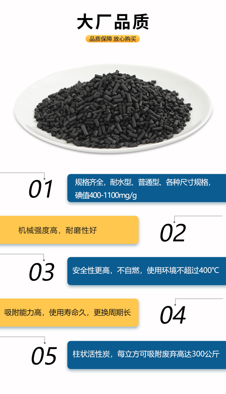 VOCS处理工业废气脱硫脱硝煤质柱状活性炭 空气净化